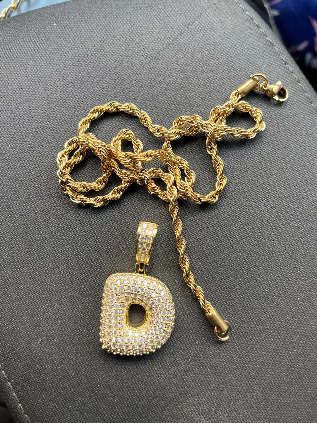 Crafted in 18 karat gold plating, the Custom Bubble Letter Pendant 18K is a custom item that is sure to upgrade any fit.